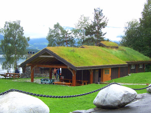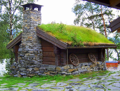Gdzieś zniknęli mi chłopaki ale co tam lecę niżej z wycelowanym aparatem, zdziwił mnie tylko dym idący bokiem od domku... i!?!... Tu scena jak w głupiej, amerykańskiej komedii. Wpadam w środek męskiej sauny gdzie bywalcy siedzą jak ich Pan Bóg stworzył, na świeżym powietrzu ma się rozumieć (ściślej rzecz biorąc na podeście przylegającym do rzeki). Zdążyłam powiedzieć tylko oOo! i dyla z powrotem do auta. Wiejąc, usłyszałam aplauz Wikingów. Zataczając się ze śmiechu dotarłam do dziewczyn i im to opowiedziałam. Te chyba nie uwierzyły bo zaraz tam polazły razem z dziećmi. Okazało się, że podchmieleni Norwedzy zdążyli przemieścić się w różnych kierunkach. Bez większego obciachu spacerowali w negliżu. No może na widok dzieci zasłonili się co niektórzy ręcznikami. W końcu znalazłyśmy naszych chłopaków (całe szczęście ubranych), którzy zupełnie nieświadomi zaistniałej sytuacji ucięli sobie wewnątrz lokalu pogawędkę na temat raftingu z panem obsługującym.